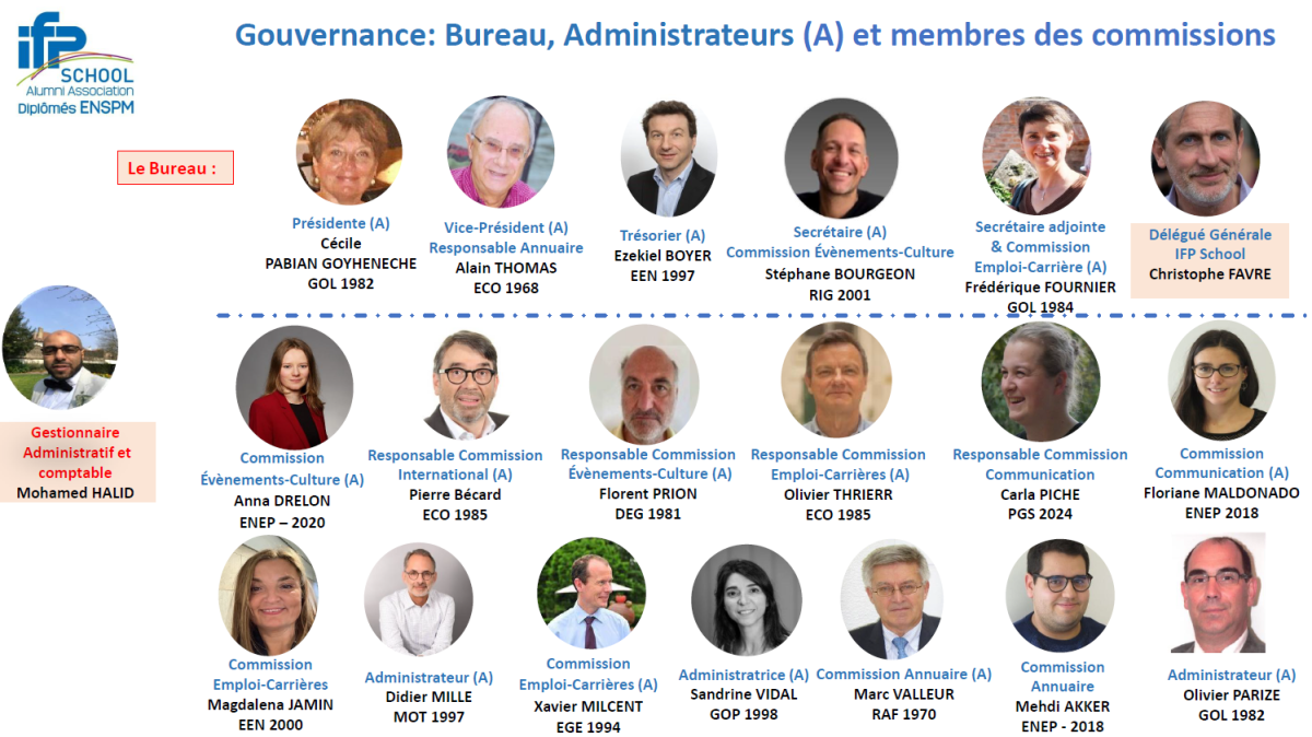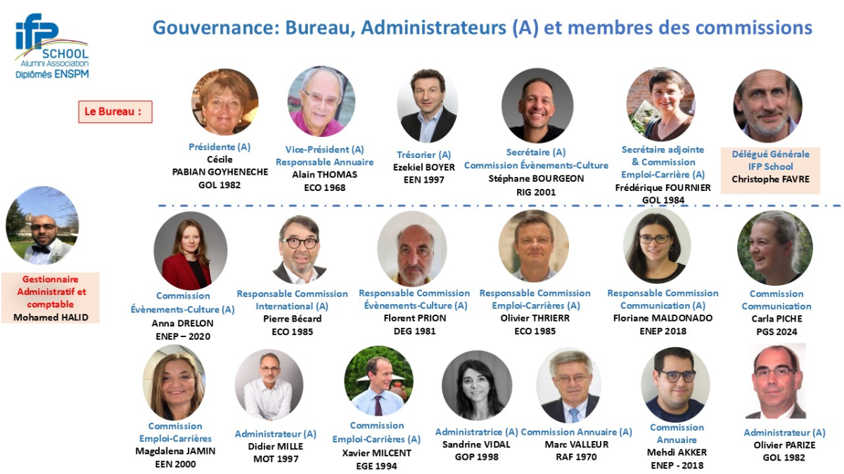 Following the Annual General Meeting of April 8, 2022 and the election of 6 new directors, and following the reunion of the Board on April 22, we are pleased to present the new members of the IFP School - ENSPM Alumni Association: